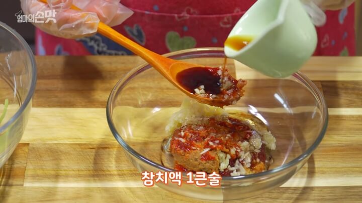 참치액 1큰술을 넣어 감칠맛을 더하고 양념을 잘 섞어줍니다.