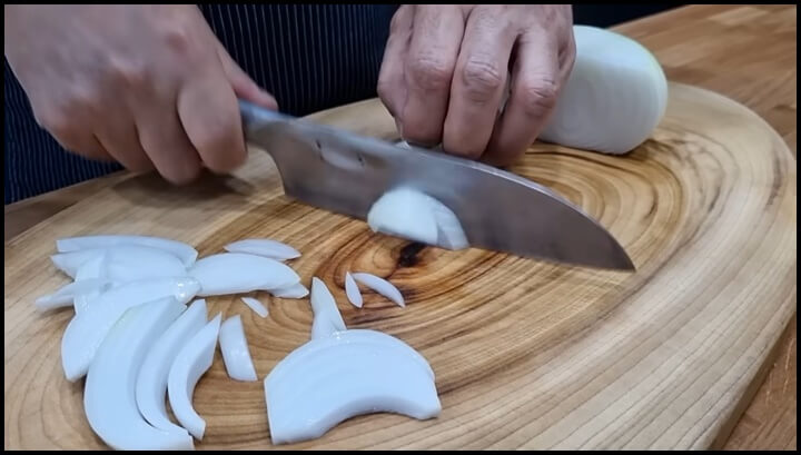 3) 양파 1/3쪽은 채썰어 줍니다.