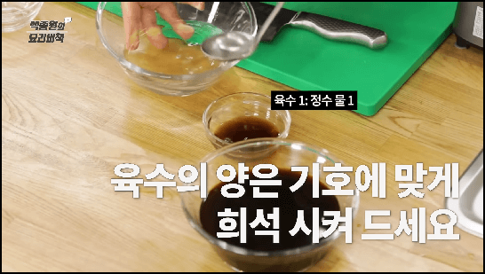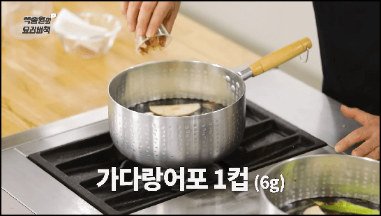 [출처 ; 유튜브 백종원, 메밀국수 메밀소바 만드는법, 메밀국수 소스만드는 법]