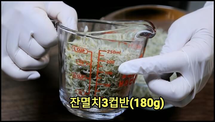1) 잔멸치 3컵반(180g)을 준비하고,