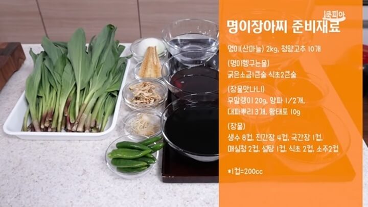 [출처 : 유튜브 쿡피아, 명이나물 장아찌 황금레시피, 만드는법, 먹는법]