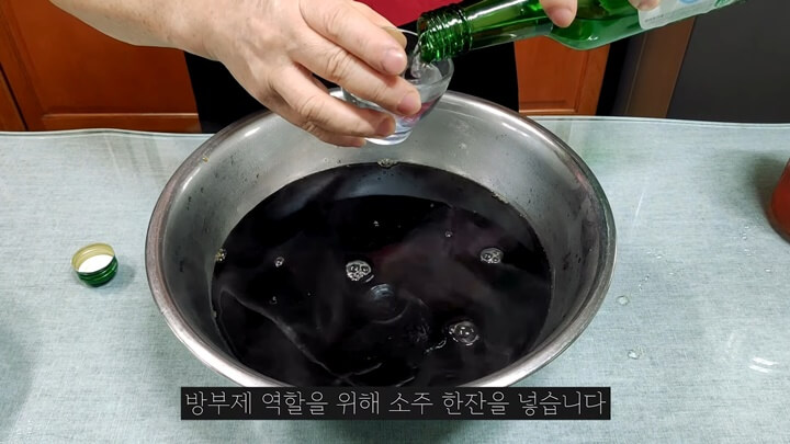 깨끗이 씻은 뒤 식초 2 숟갈 정도를 넣고 3분간 담가둡니다. 3분간 담가 둔 뒤 깨끗이 씻어서 헹군 후 물기를 빼서 준비해 둡니다.
