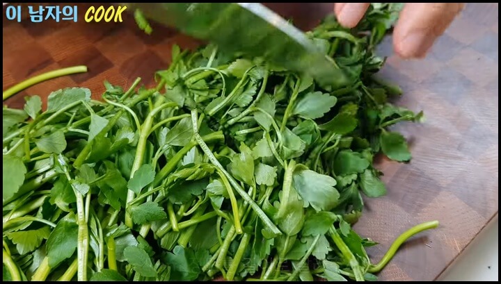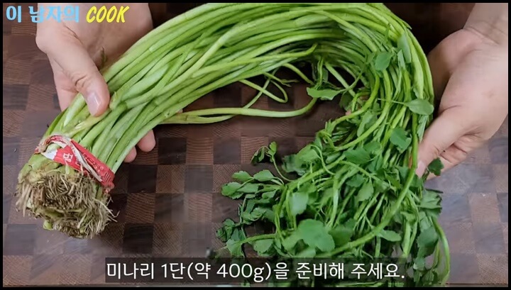[출처 : 유튜브 이 남자의 쿡, 미나리무침 만드는 법, 미나리 요리]