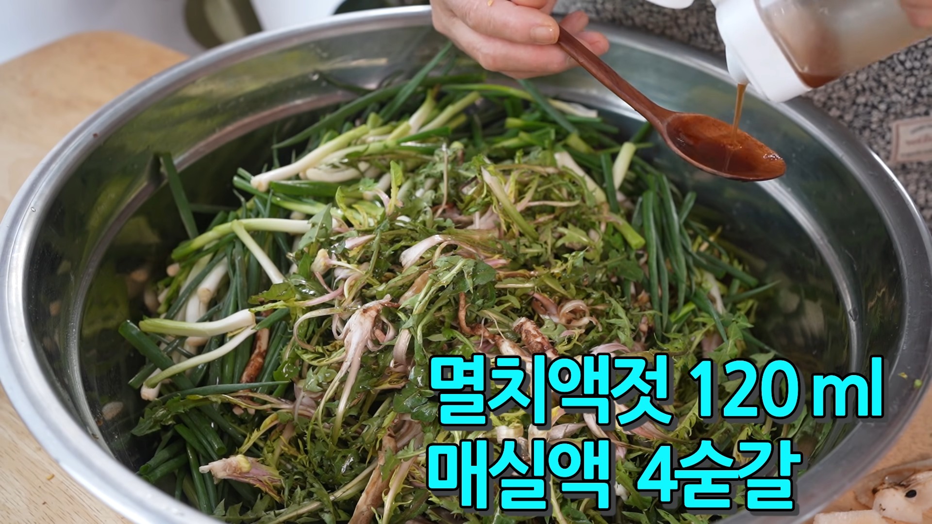 3. 민들레 무침만들기, 민들레 김치 담그는법 - 양념하여 버무리기