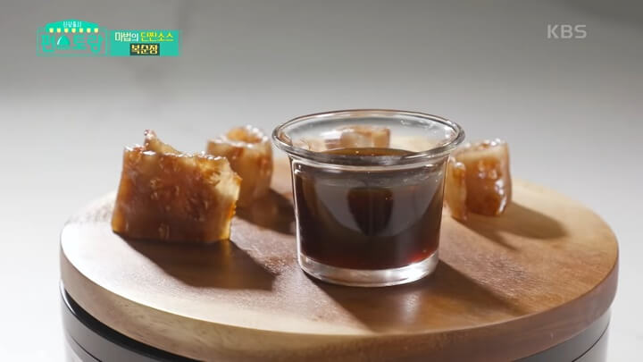 완성된 편스토랑 복순장, 단짠 소스는 두 가지 버전으로 활용할 수 있는데요, 완성된 그대로 묽게 사용할 수도 있고, 좀 더 졸이고 졸여서 꾸덕꾸덕한 상태의 글레이즈로 만들어서 사용할 수도 있어요.