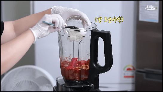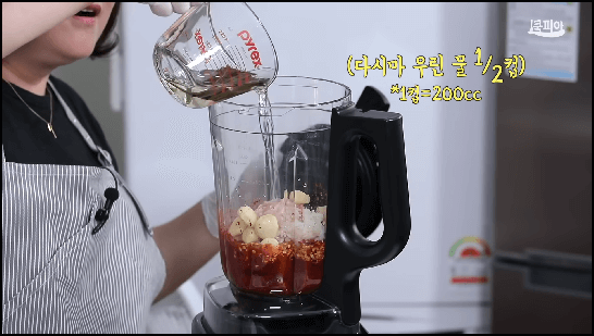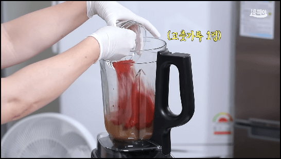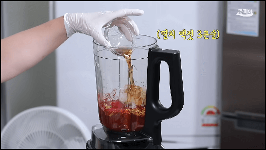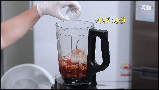 이제 양념장을 만들어 줍니다. 믹서기에 재료들을 모두 넣고 갈아주기만 하면 됩니다.