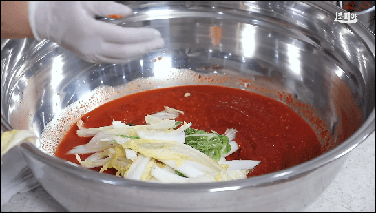 이제 양념장이 다 완성되었으니 절인 배추를 버무려봅시다.