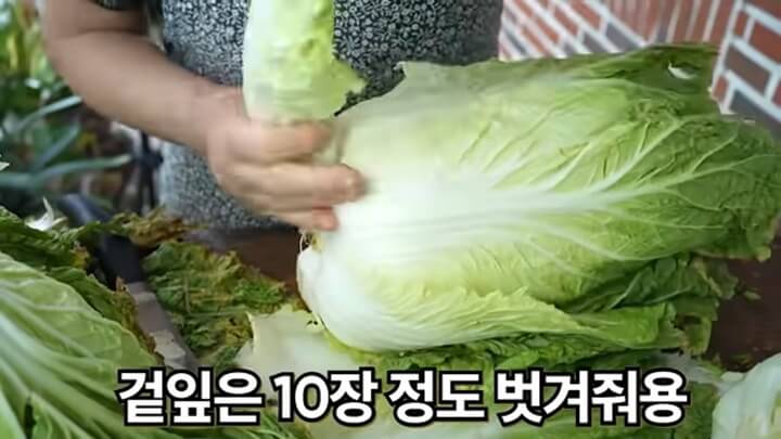 저장 배추는 무게가 무겁고 겉잎이 시들하며, 봄배추는 무게 가볍고 잎이 깨끗합니다. 시든 겉잎은 10장 정도 벗겨냅니다. 벗겨낸 잎은 시래깃국이나 고등어조림 등에 넣어 먹으면 됩니다.