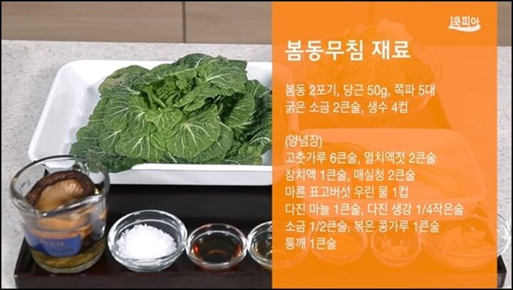 [출처 : 유튜브 쿡피아, 봄동 겉절이 황금레시피, 봄동 무침]