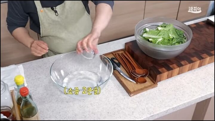 2. 봄동 겉절이 황금레시피 - 소금물에 헹구기