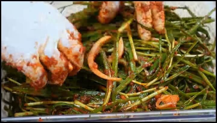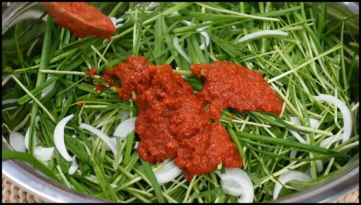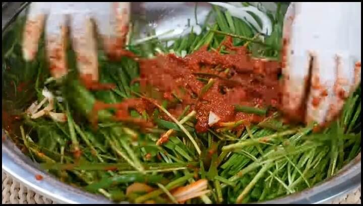 [출처 : 유튜브 양장금주부, 부추김치 맛있게 담그는법, 부추겉절이]