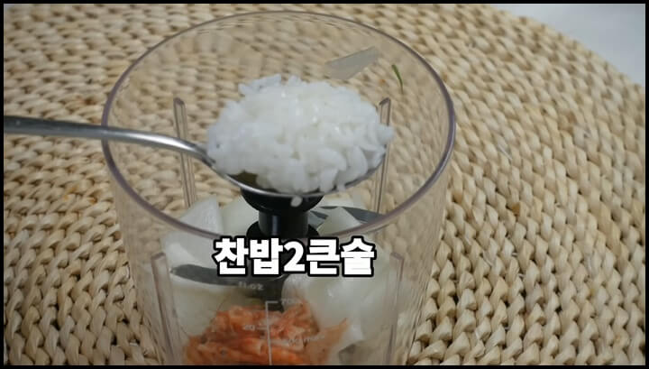 3) 찬밥 2큰술을 넣고