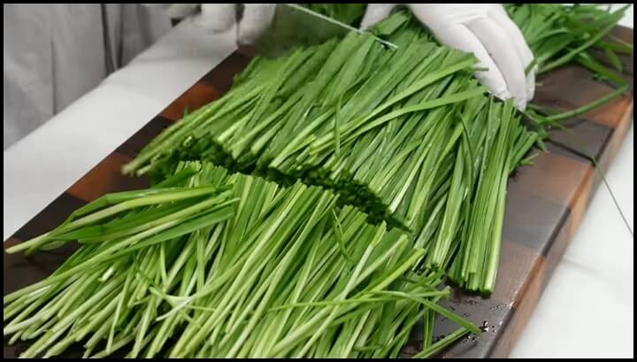 2) 부추는 취향에 맞게 적당한 길이로 잘라줍니다. 자르지 않게 길게 그대로 만들어도 좋습니다.