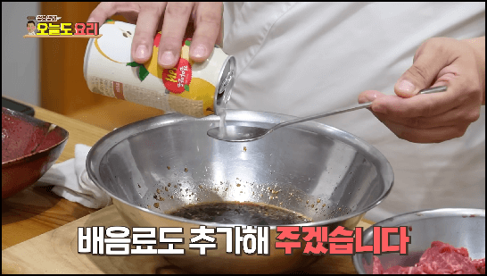 보통의 불고기는 양념장에 고기를 재운 후 구워주지만, 오늘 소개드리는 정호영셰프님의 소불고기 황금레시피는 조금 다르게 만드는데요, 여기서부터 다른 부분입니다.