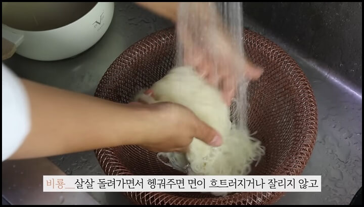 4. 비빔국수 황금레시피, 비빔국수 양념장 - 국수 행구기