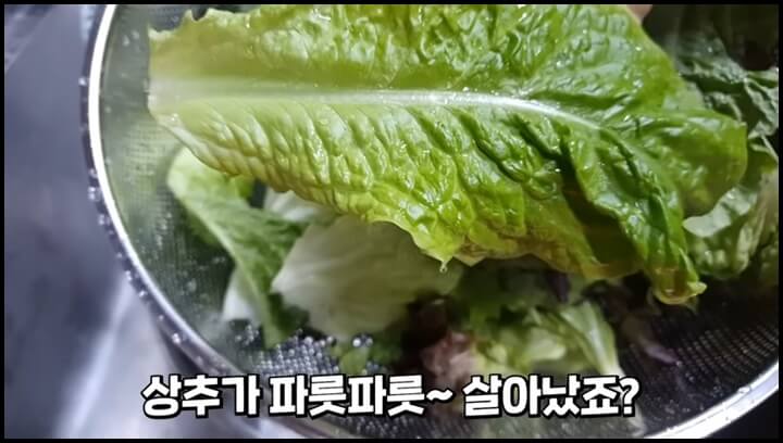 상추를 씻을 때는 차가운 물보다는 미지근한 물을 사용하는 것이 좋습니다. 미지근한 물에 상추를 잠시 담가두면 시든 상추도 확 살아납니다. 따뜻하거나 뜨거운 물이 아닌 미지근한 물을 사용해야 합니다.