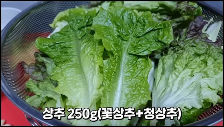 1) 상추는 꽃상추, 청상추 섞어서 준비하면 되고, 상추를 먼저 씻어줍니다.