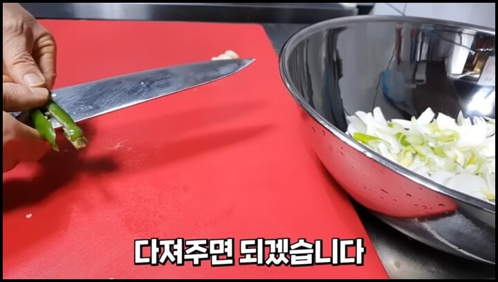 3) 청양고추는 십자로 자른 후 잘게 다져줍니다.