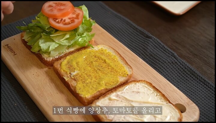 샌드위치 만들기, 풍성하고 예쁜 클럽 샌드위치 만들기가 아주 간단하고 쉽습니다. 특히 소스를 마요네즈와 머스터드 소스를 사용하니 따로 만들 필요없이 더 간단하고 좋은 것 같습니다.