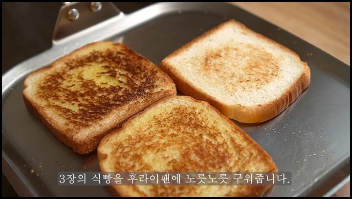 3. 그리고 팬에 식빵을 앞뒤로 노릇노릇 구워줍니다.