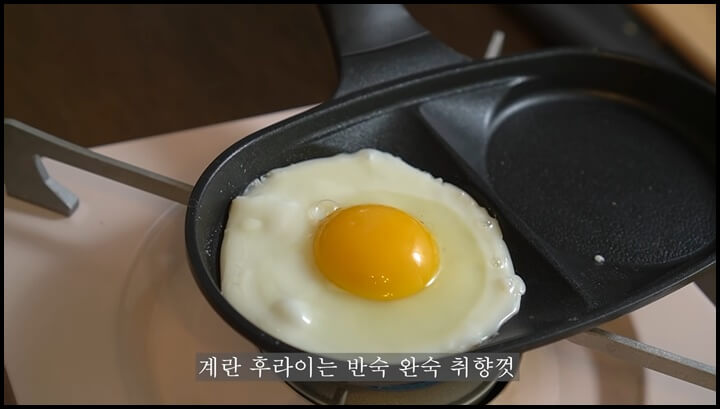 5. 계란 후라이 1개를 구워주는데, 반숙 또는 완숙으로 취향껏 구워줍니다.