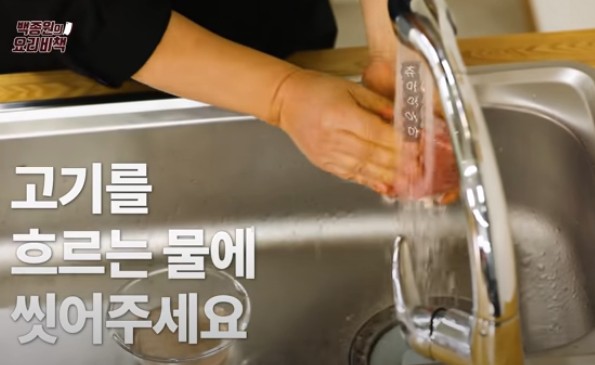 신선한 고기는 핏물을 뺄 필요가 없지만, 냉장이나 냉동 보관하여 시간이 지난 고기는 핏물을 제거해 주는 것이 좋아요. 고기를 흐르는 물에 한번 씻어서 핏물을 제거해 주세요.