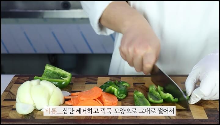양파, 당근 등 자투리 채소를 준비하고, 피망 하나 정도만 구입해 주시면 됩니다.