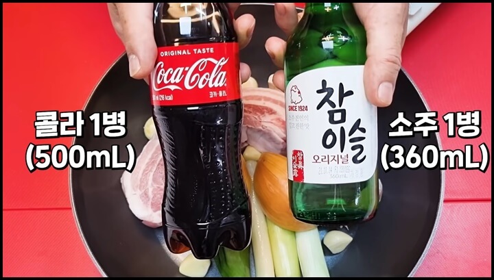 수육 맛있게 삶는법의 중요한 포인트 재료 3가지가 있습니다. 그것은 바로 소주, 콜라, 양파입니다.