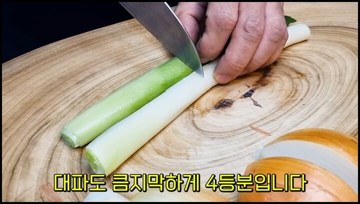 2) 대파도 큼직하게 4등분으로 잘라줍니다.