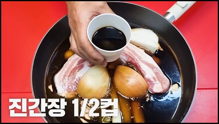4) 진간장 종이컵 1/2컵을 넣어줍니다.