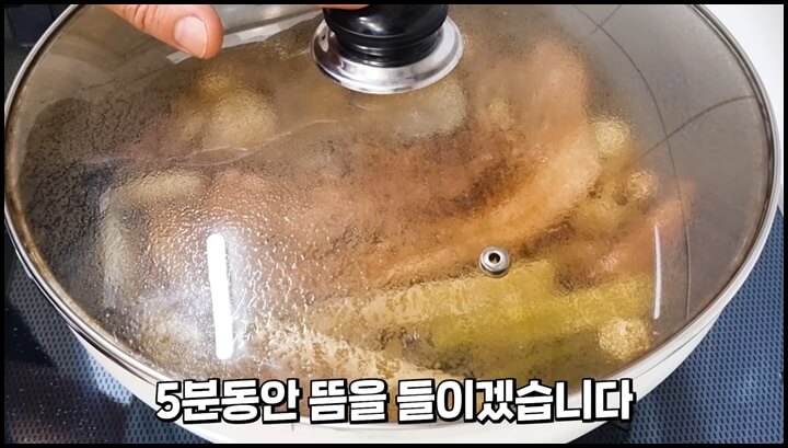 1) 처음에는 강불로 켜 줍니다. 뚜껑을 닫고 강불에서 5분을 삶아줍니다.