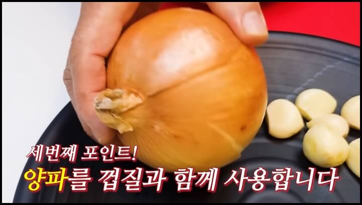 3) 양파는 껍질과 함께 사용합니다. 양파 껍질에는 알리신 성분이 있어서 혈액순환을 원활하게 하고 소화를 촉진하며 항암효과가 있다고 합니다.