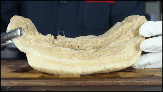 뜸 들이기까지 끝냈다면 수육 삶기는 완성입니다. 고기를 꺼내보면 야들야들 부드럽게 삶아졌는데요, 이제 먹기 좋은 크기로 썰어서 드시면 됩니다.