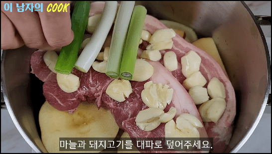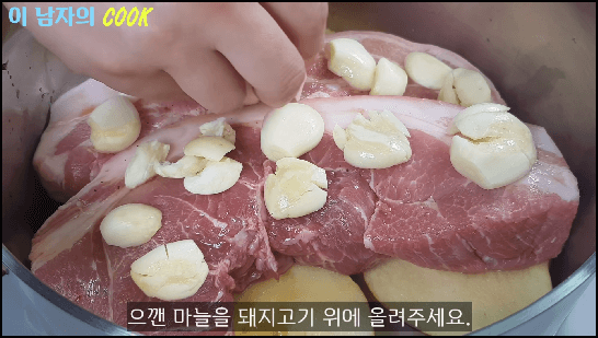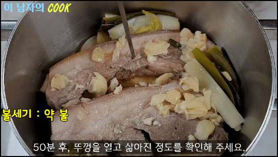 [출처 : 유튜브 이 남자의 쿡, 수육 맛있게 삶는법, 수육 삶는 방법]