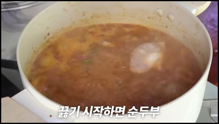 이제 본격적으로 순두부찌개를 끓여봅시다.