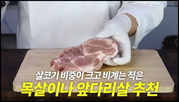 그래서 살코기 비중이 크고 지방이 조금 있는 목살이나 앞다리살을 사용하면 좋습니다.