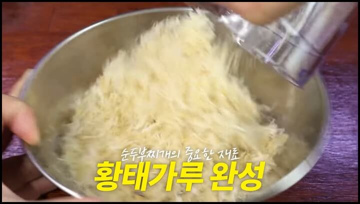 2. 순두부찌개 황금레시피, 순두부찌개 맛있게 끓이는법 - 기름과 황태채 가루 만들기