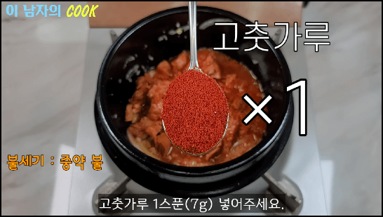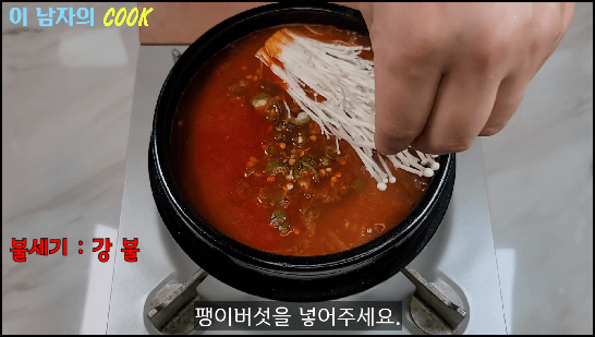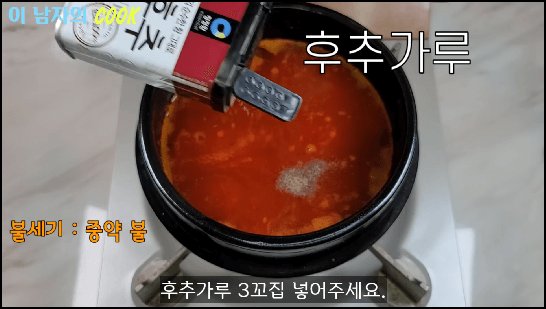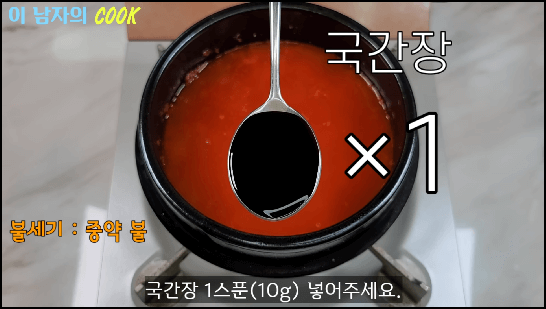 [출처 ; 유튜브 이 남자의 쿡, 순두부찌개 황금레시피, 순두부찌개 맛있게 끓이는법]