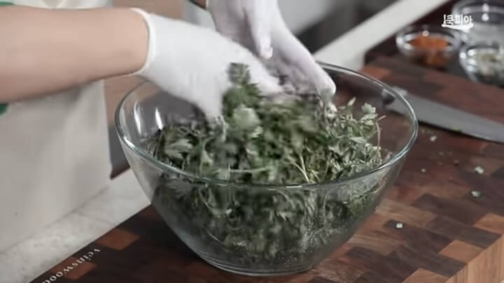 1. 쑥국 맛있게 끓이는 법 - 쑥 손질하여 콩가루 묻히기