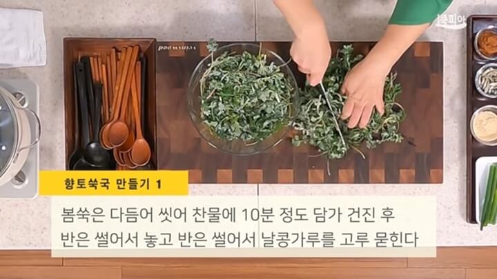 [출처: 유튜브 채널 쿡피아, 쑥국 맛있게 끓이는 법]
