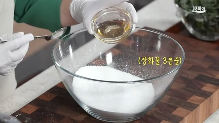 꿀이 없다면 설탕이나 올리고당을 사용해도 되지만 꿀이 가장 맛있다고 합니다.