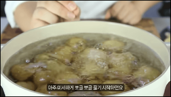 아주 미세하게 보글거리기 시작하면 불을 끄고 찬물에 헹궈주면 됩니다.
