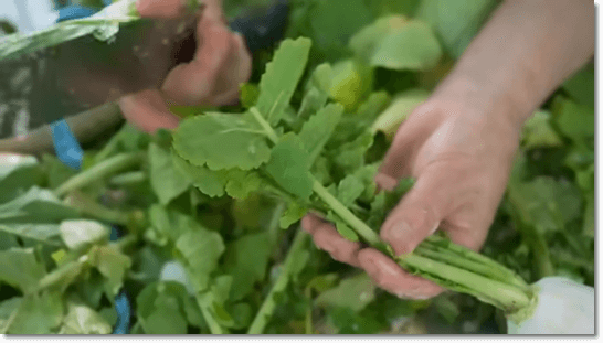 겉잎의 억센 것들만 돌려가며 2~3개 떼어내서 제거해 줍니다. 잎의 끝 부분은 잘라냅니다. 모두 손질하면 2.9kg의 무게가 나오니 담으실 때 참고하세요.