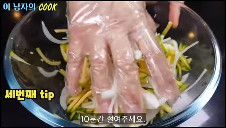 4. 애호박전 만드는법, 애호박전 황금레시피 - 애호박과 양파 절이기