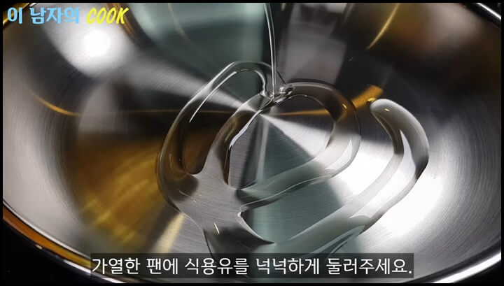 1) 팬을 예열한 후 식용유를 넉넉하게 둘러줍니다.