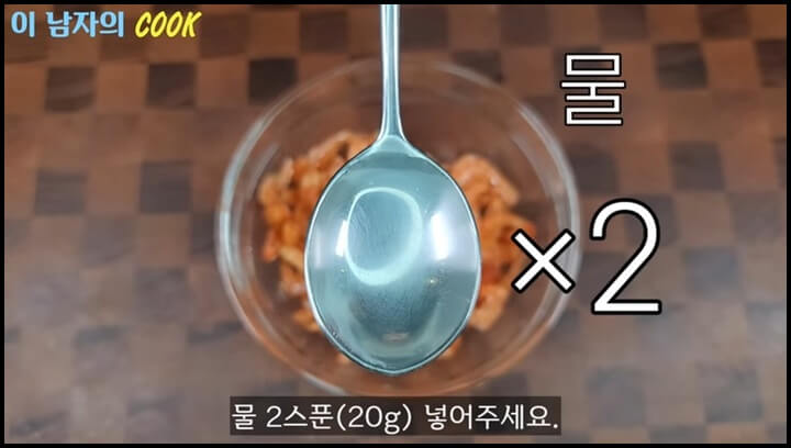 2) 건새우에 맛술 3큰술, 물 2큰술을 넣고 잘 섞어서 불려줍니다.