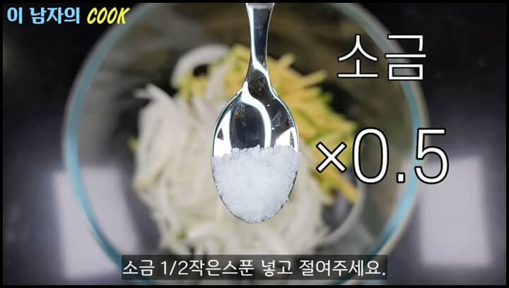 2) 소금 1/2작은스푼을 넣어서 버무려 줍니다.