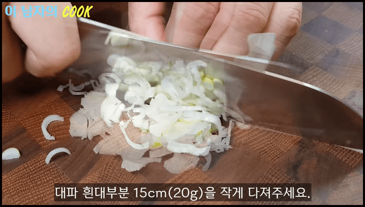 1) 대파의 흰 부분 15cm 정도를 잘게 다져 줍니다.