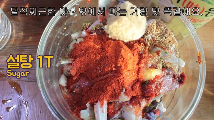 활꽃게로 만들면 더 맛있지만 냉동절단꽃게도 상관없다고 합니다. 냉동게는 얼린 상태에서 양념을 무칩니다.
