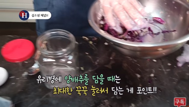 5. 양배추 요리, 양배추 절임 만드는법 - 덮개, 유리병으로 눌러주기